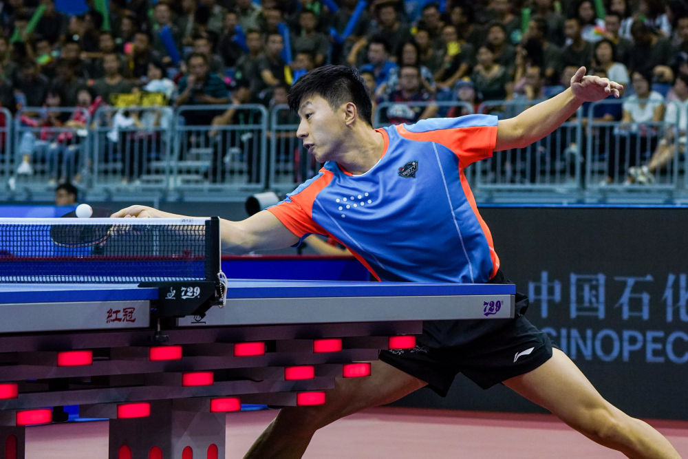 2019年4月28日,马龙在匈牙利布达佩斯举行的2019世界乒乓球锦标赛男单决赛中回球。最终,他夺得冠军。新华社记者 韩岩 摄