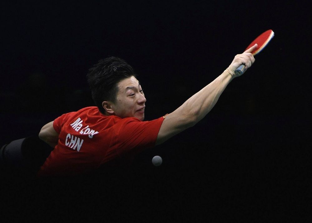 2016年8月17日,马龙在里约奥运会乒乓球男子团体赛决赛中。最终,中国队3比1战胜日本队夺得金牌。 新华社记者 王鹏 摄