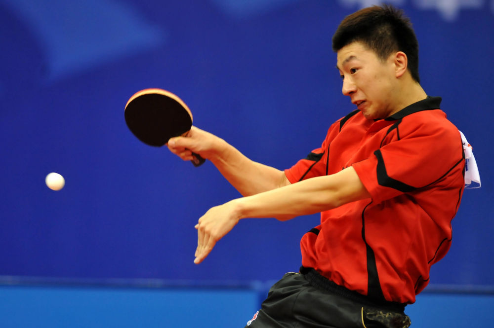 2009年10月2日,北京队选手马龙在第十一届全国运动会乒乓球男子单打决赛中回球。最终,他获得亚军。新华社记者 韩瑜庆 摄