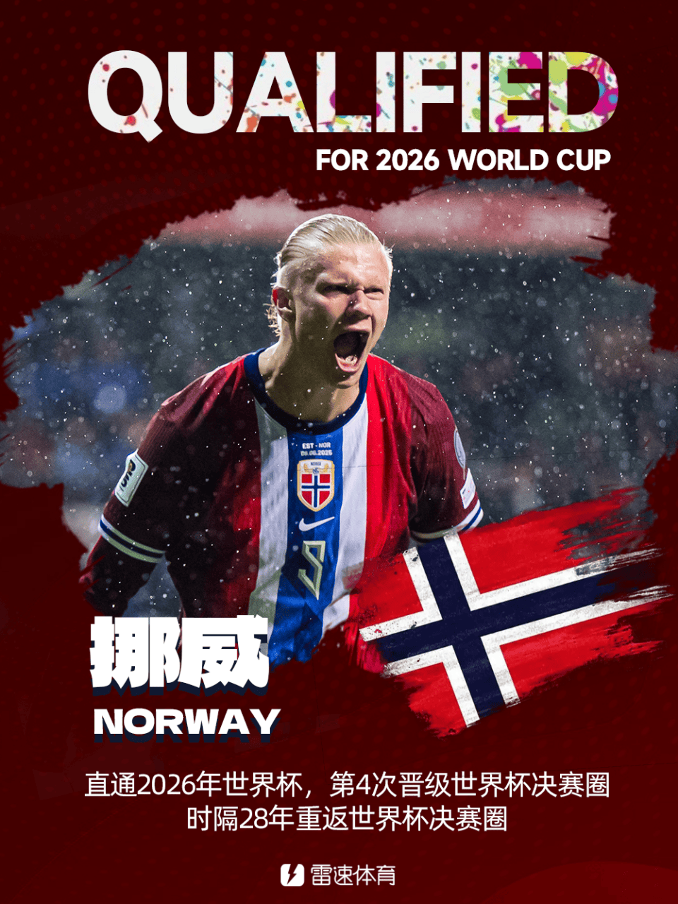 2026世界杯赛程,世界杯投注,世界杯球队阵容,世界杯预测,世界杯直播/全网最全的2026年世界杯专题报道,提供赛程时间表、球队阵容、赔率分析、投注预测与实时比分,助你掌握每一场焦点战况。随着终场哨声的吹响,雷速体育见证了挪威足球历史性的一刻:在刚刚结束的世界杯欧洲区预选赛中,挪威队以3:1力克劲敌意大利,昂首锁定小组头名,直接获得了2026年美加墨世界杯的入场券!
